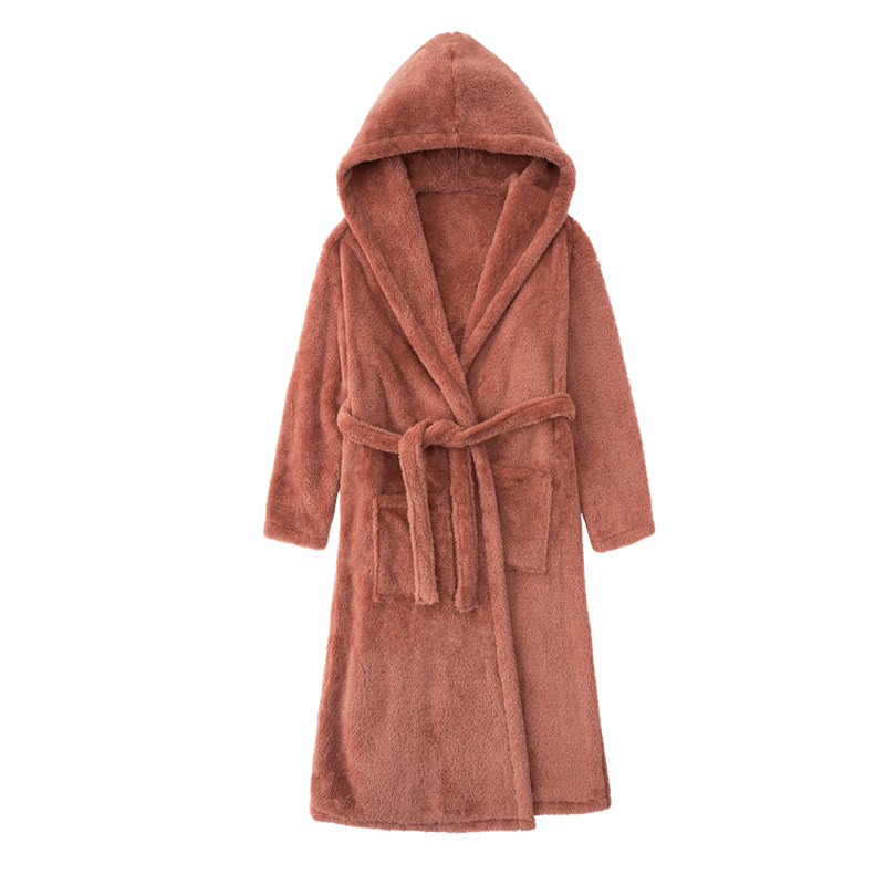 RooMance coral velvet nightgown Women's autumn and winter warm pajamas long bathrobe double-sided velvet thickened hooded morning robe