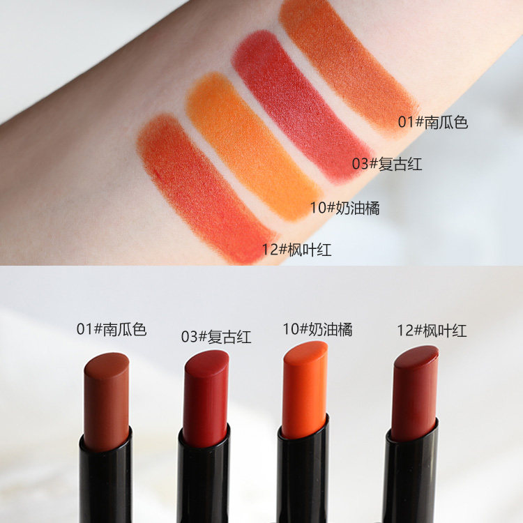 Pumpkin-colored lipstick for female students with a magnetic buckle showing white retro dirty orange positive orange niche brand matte matte