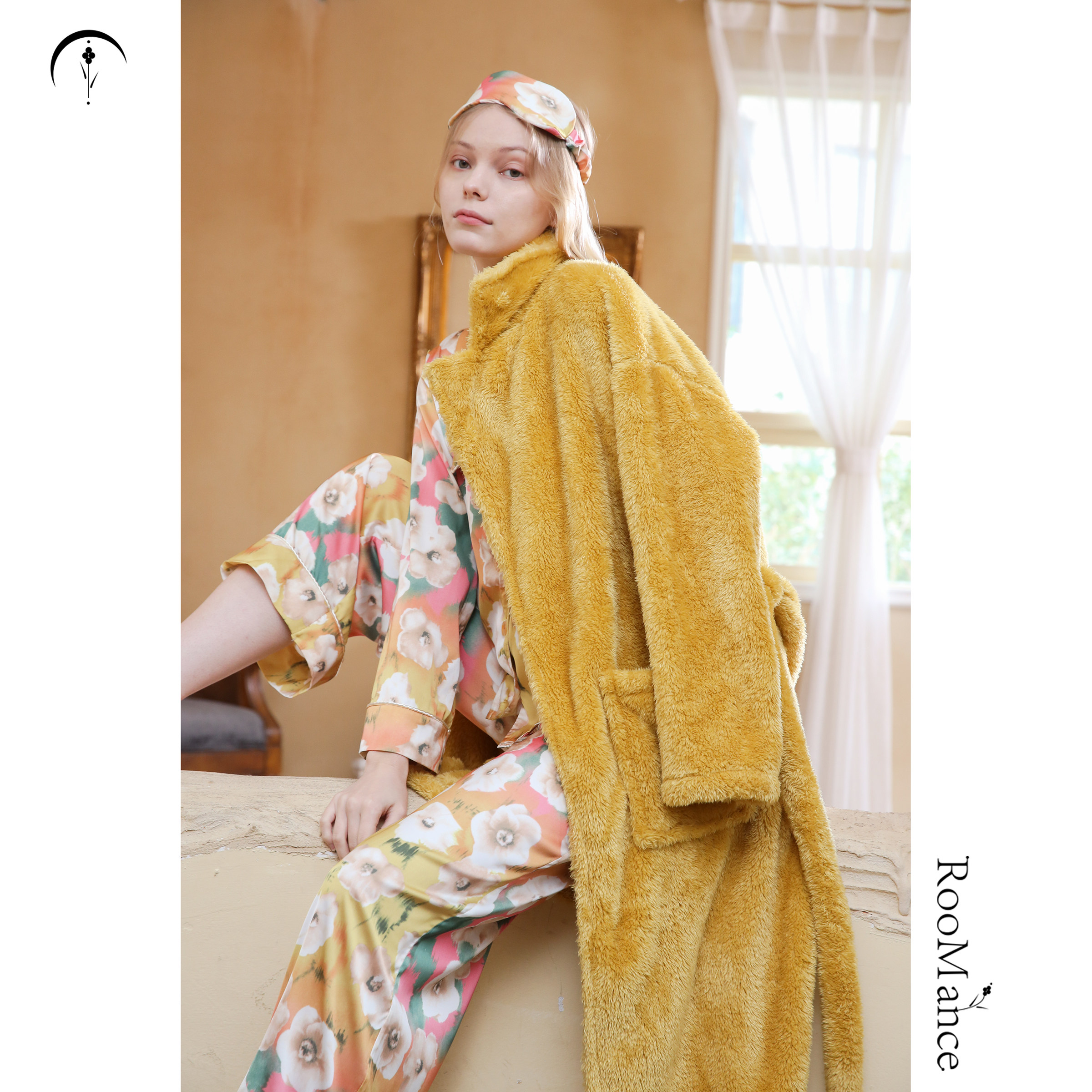 RooMance Rumansi coral velvet plush nightgown women's winter pajamas long bathrobe double-sided plus velvet dressing gown