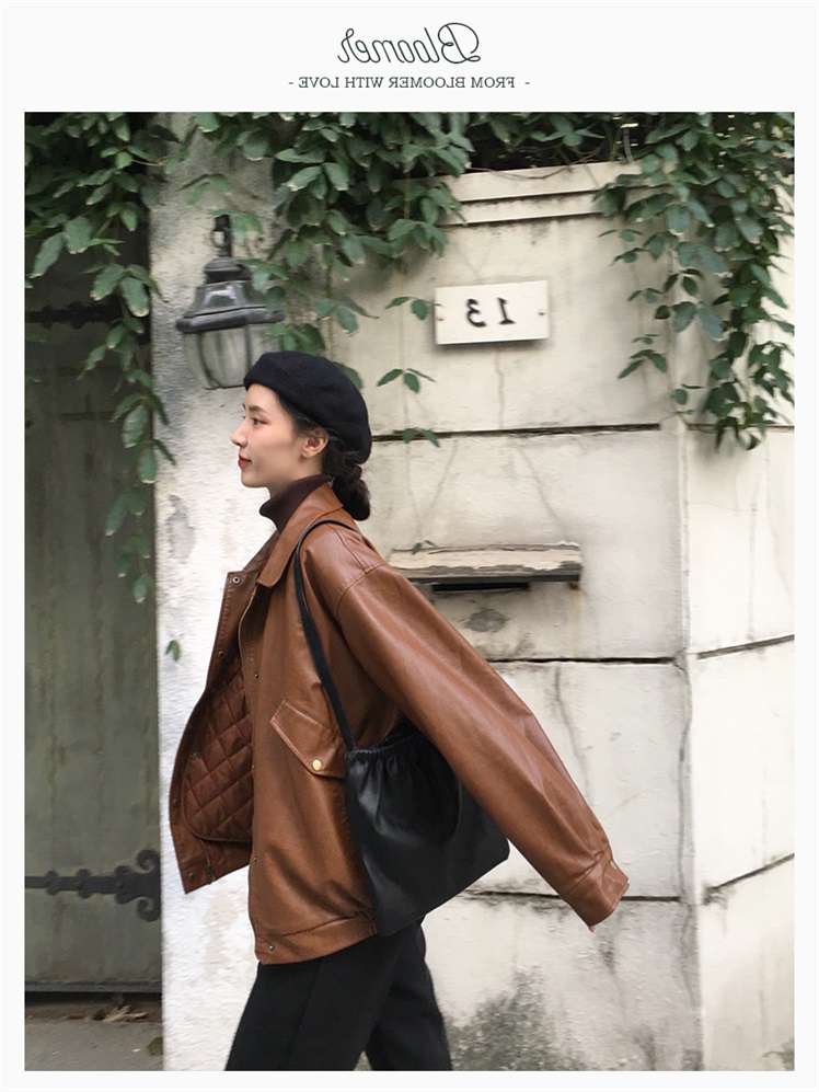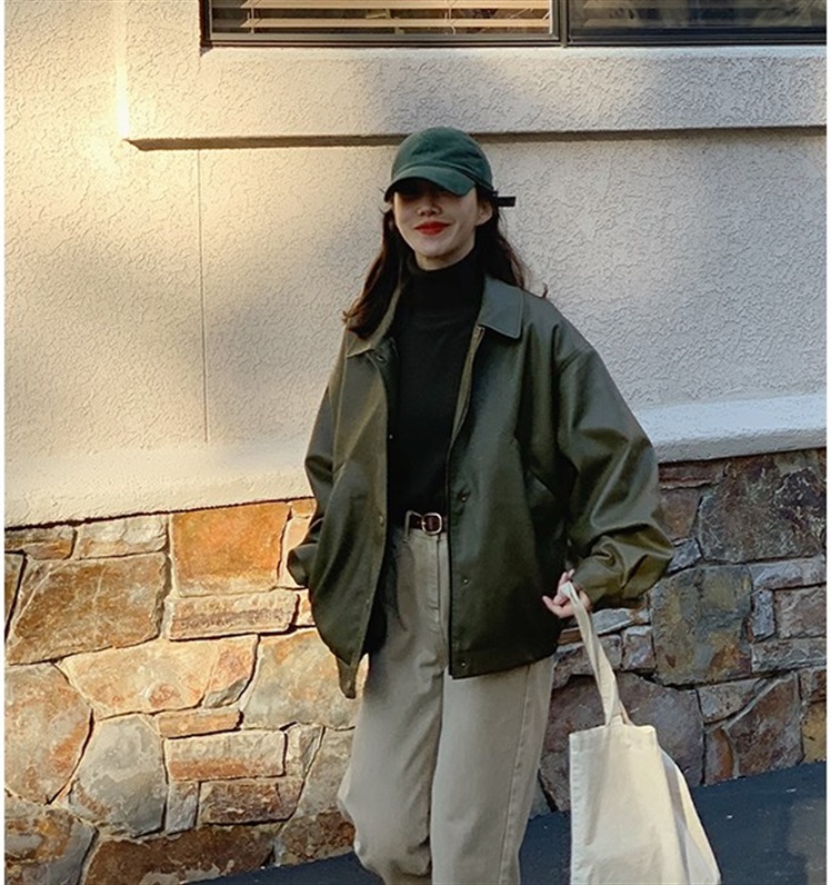 2022 spring new Korean version loose and thin pu leather jacket women's jacket short flight jacket student