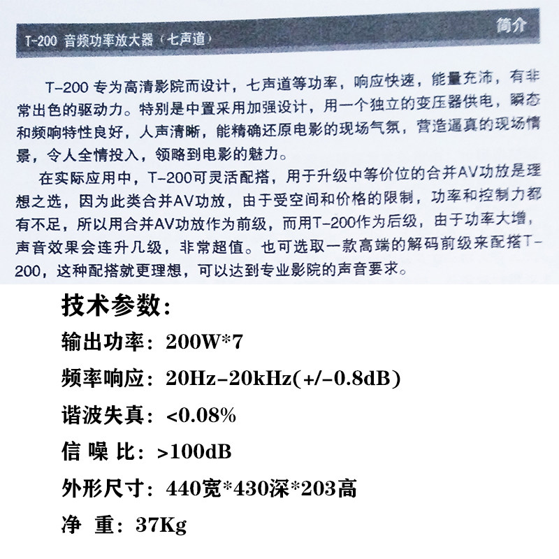 8 Da T-200 Seven Track Audio Power Amplifier Post-HIFI High Power High Definition Cinema Sound Power Amplifier