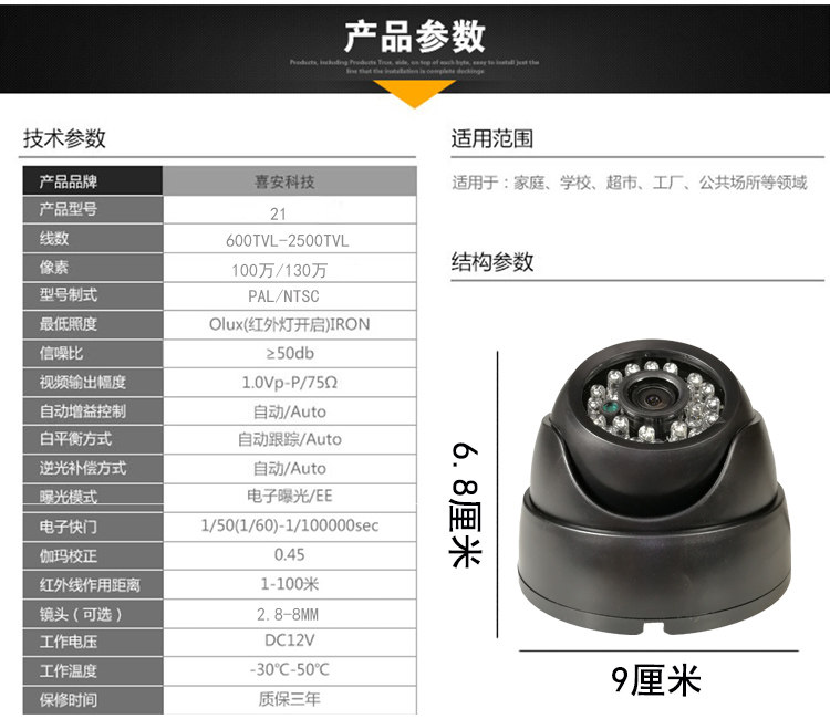 HD Dome Monitor Wide Angle Dome Surveillance Camera Infrared Night Vision CCTV Conch Analog Camera