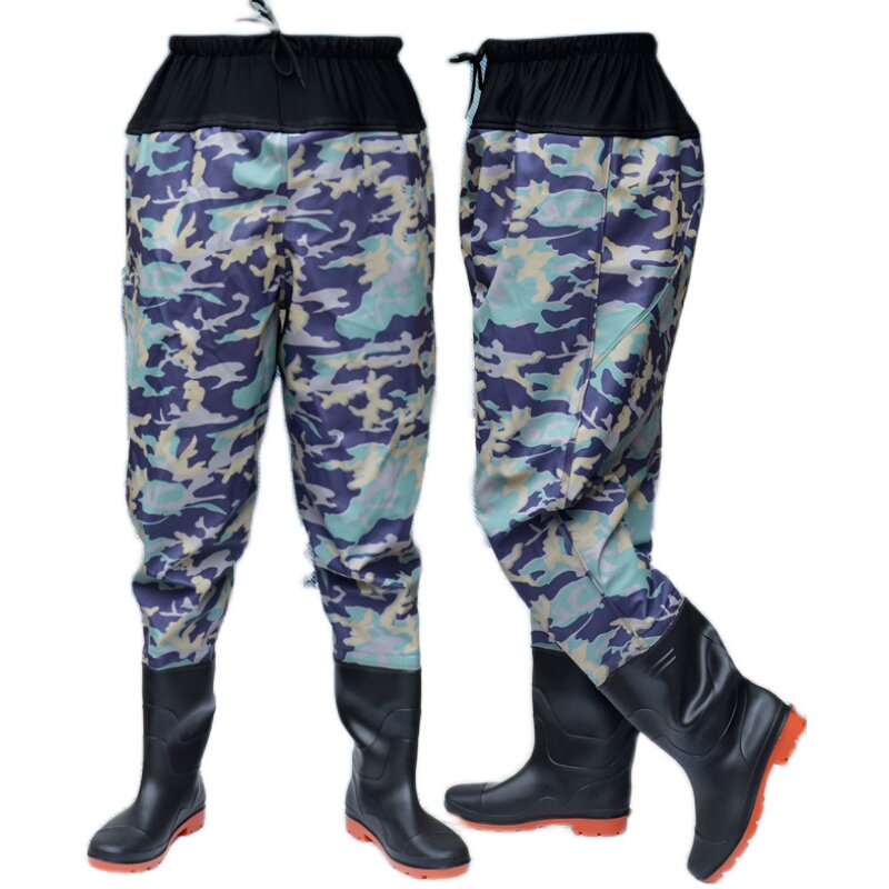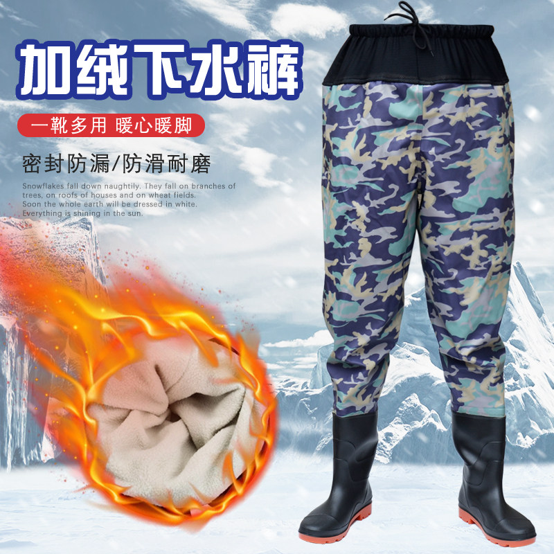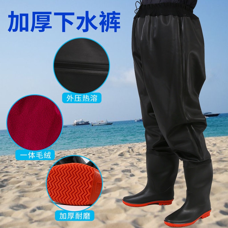 Waist-length water pants half body warm and thick men and women waterproof rain pants plus velvet fishing wading one-piece shoes non-slip shoes