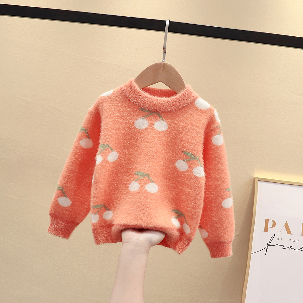 Girl Sweater Children's New Yellow-like Mink Knitted Sweater Baby Hawking Head in Big Boy Autumn Winter
