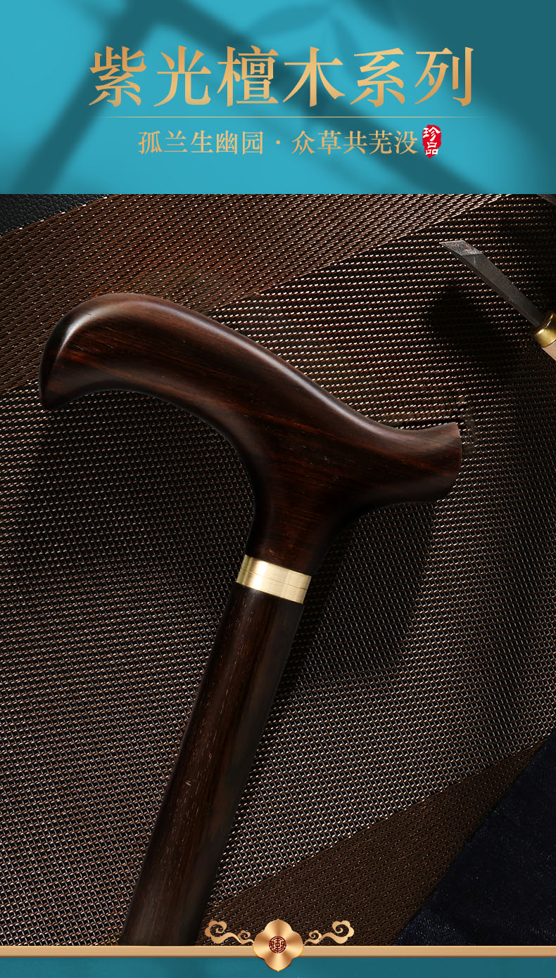 Ebony old man non-slip crutches Purple sandalwood crutches wooden walking sticks wooden walking sticks for the elderly solid wooden civilized crutches