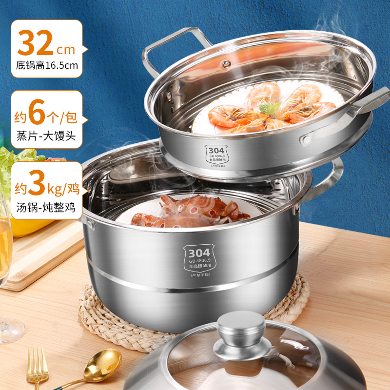 Steamer household 304 stainless steel thickened three-layer steamer cooking dual-purpose pot large induction cooker gas stove 40cm