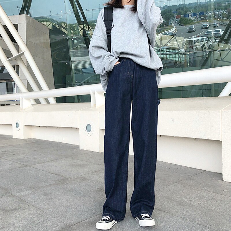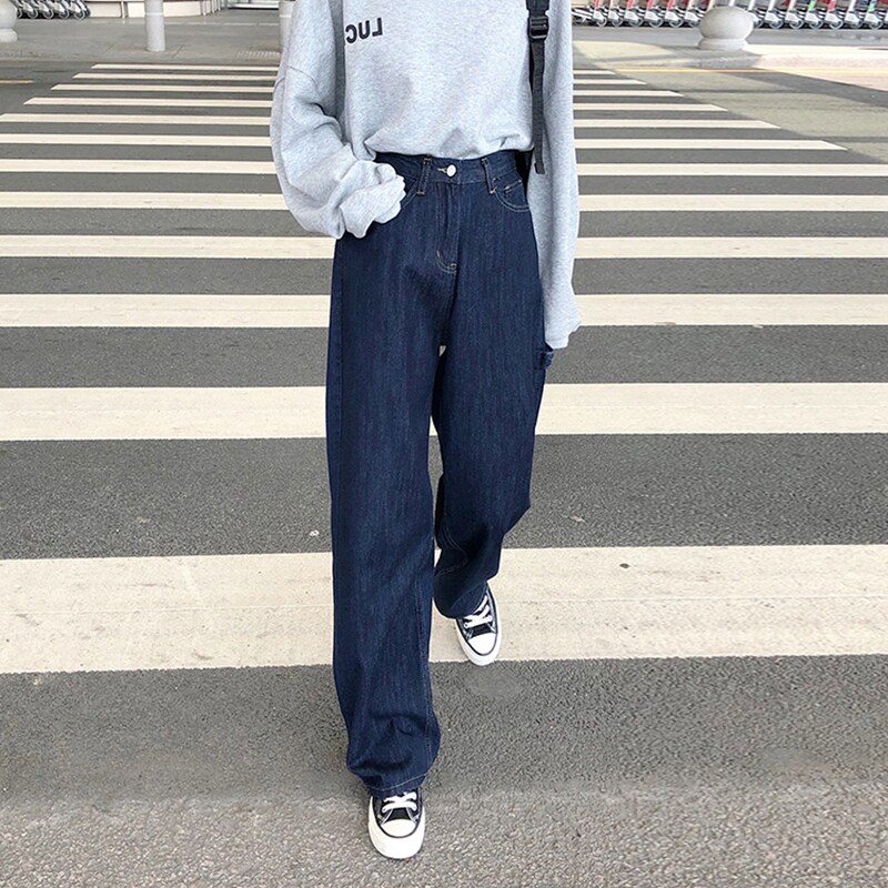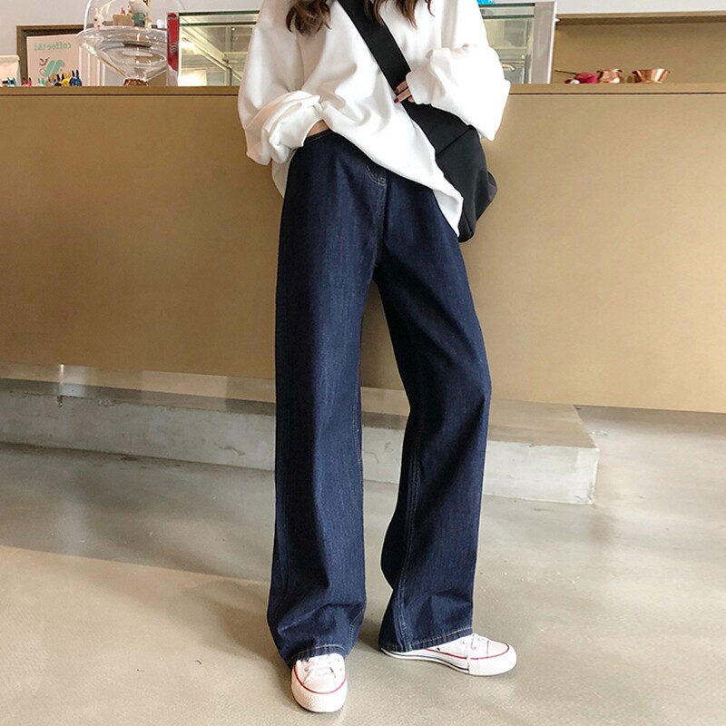 Large size jeans women's spring and autumn 2022 new high-waisted loose and thin straight-leg mopping wide-leg pants trendy ins