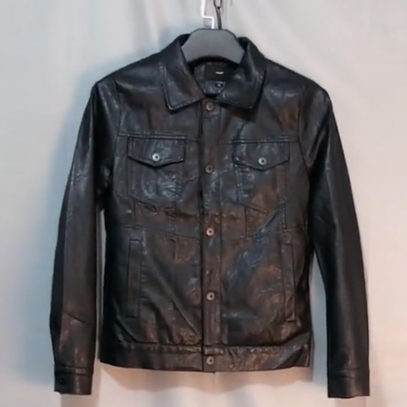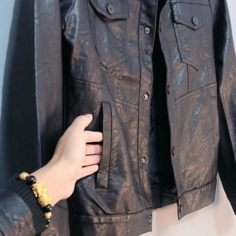 Social spiritual boy leather clothes red same plus thick leather coat winter new short jacket