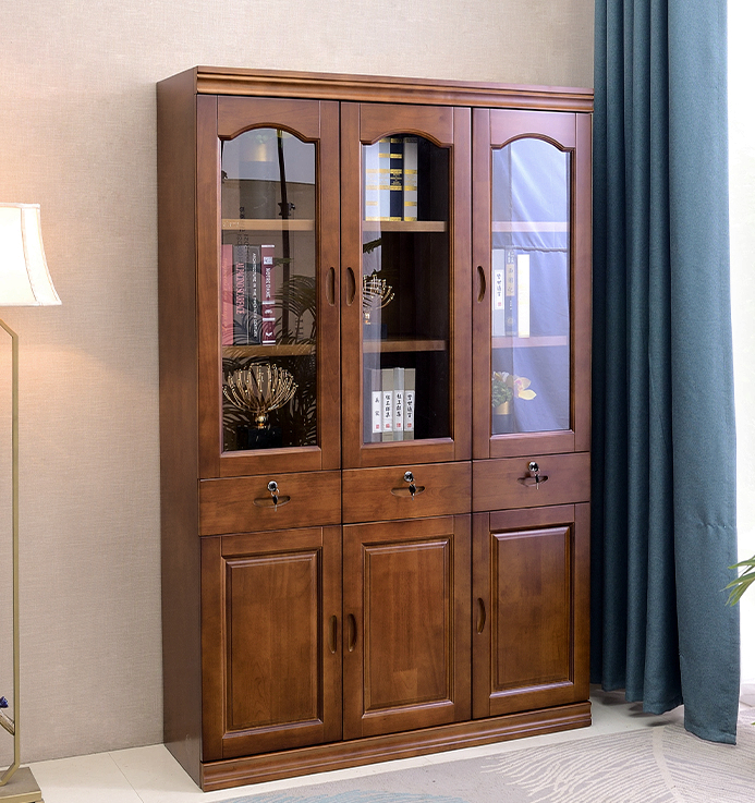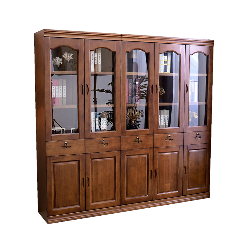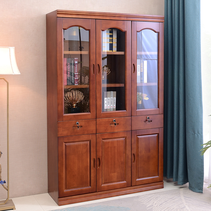 Solid wood bookcase bookshelf floor-to-ceiling home two-door free combination with lock glass door bedroom student bookcase display cabinet