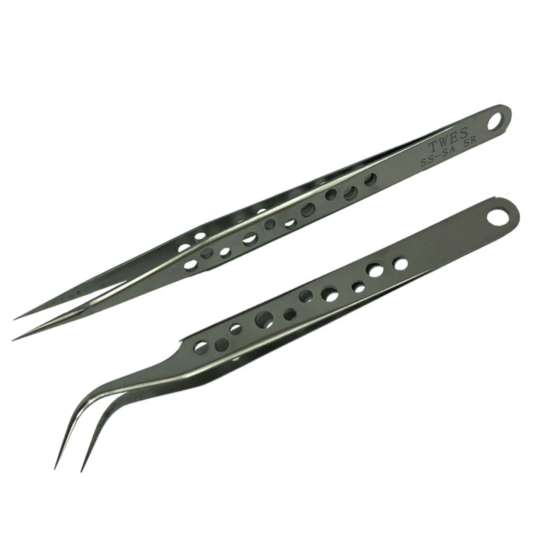 TWS perforated tweezers (straight tip)TWS perforated tweezers (curved tip)