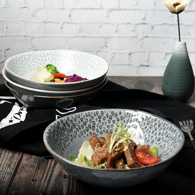 Day Style Relief Ceramic Cutlery Salad Bowl Creative Retro Home Dish Bowl pull noodles bowls Ingrid red noodles Bowl Blemish