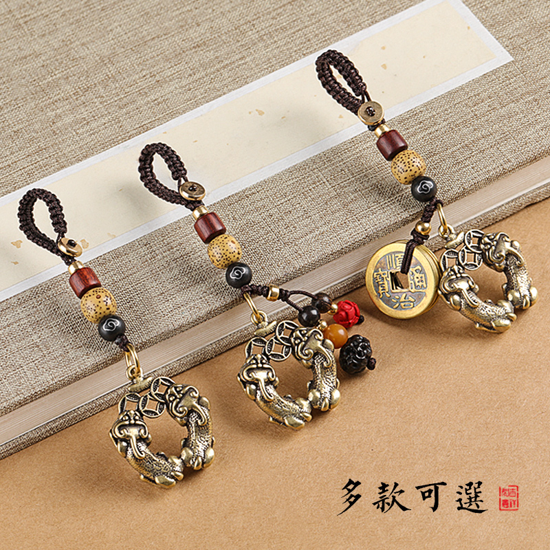 Pure brass lucky Pixiu keychain vintage handmade creative car key pendant men and women pendant gift jewelry