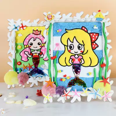 Children's handmade DIY snowflake mud painting Mermaid princess photo frame decoration pearl mud clay creative toy