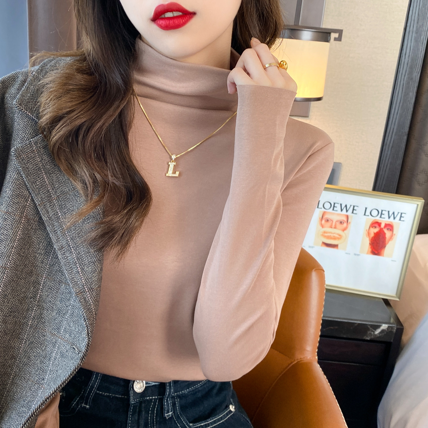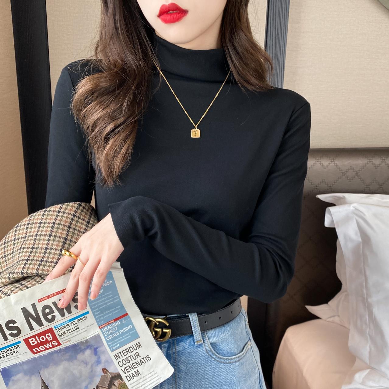 Autumn and winter 2022 new half-height collars undershirt women 100 hitch T-shirts Body Suede Long Sleeves High Collar Inner Hitch