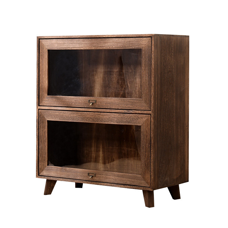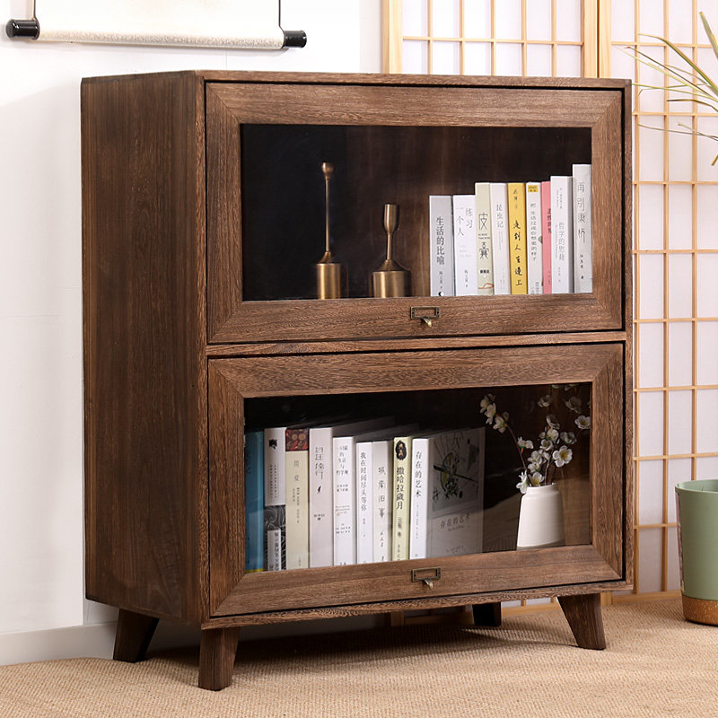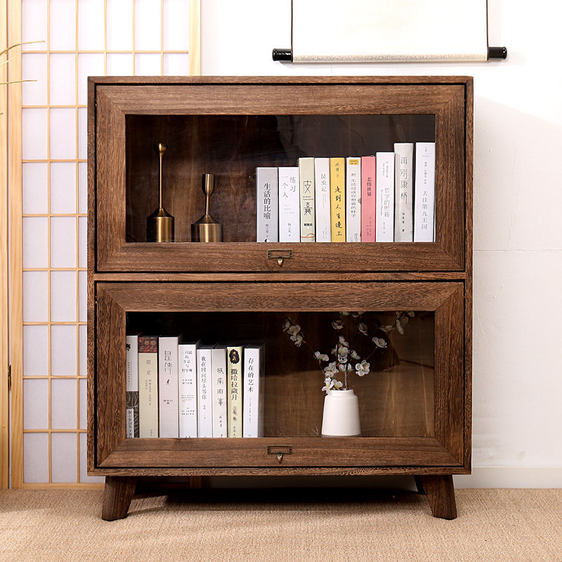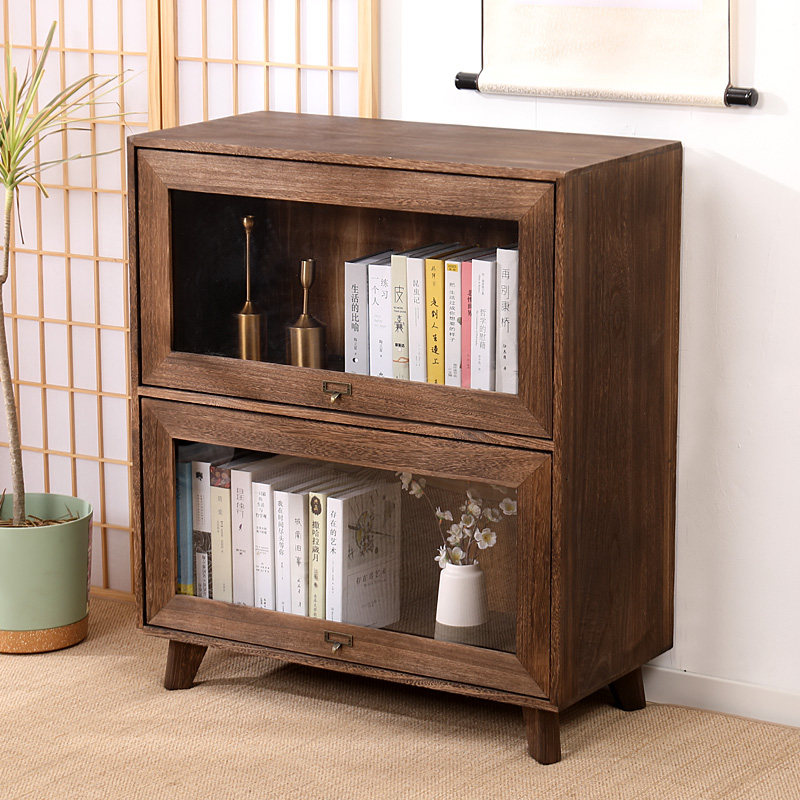 Solid Wood Storage Case Shelve Glass Door Storage Display Cabinet Double Door Bookcase Landing Style Bookcase Clamshell Style Tea Cabinet