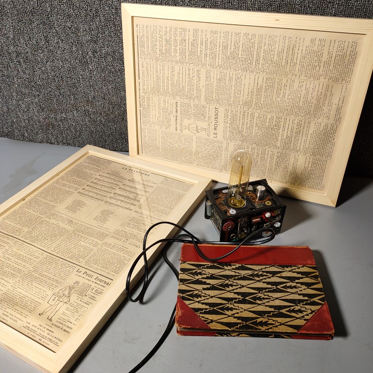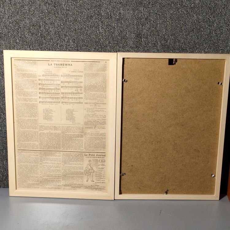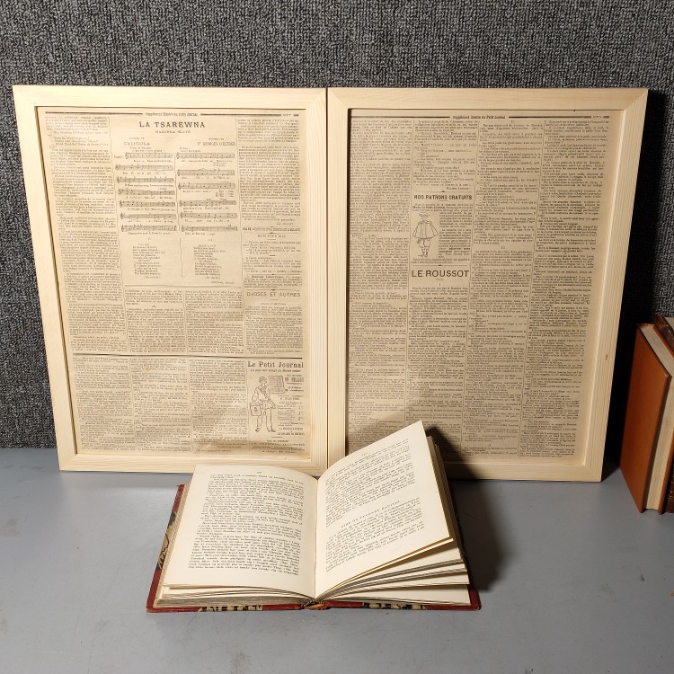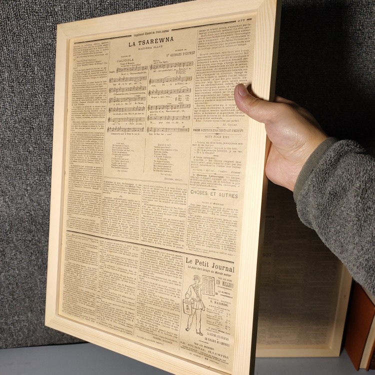 Antique 1890 French Illustrator Birthday Newspaper in English French newspaper Solid wood frame Café Minjuku Pendulum Photography Background