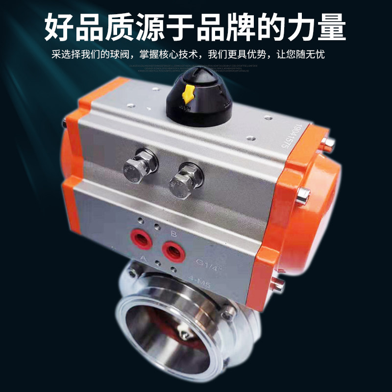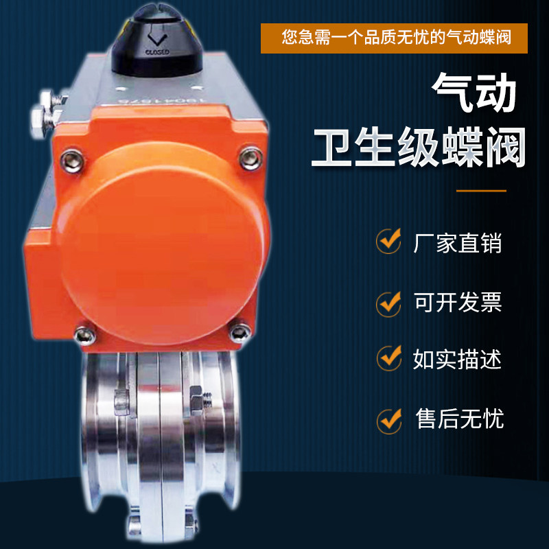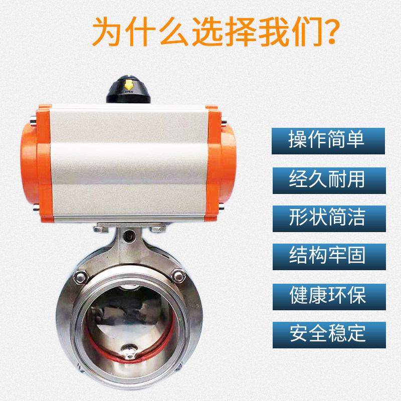Pneumatic sanitary stage fast-fit butterfly valve 304316 stainless steel Q681F bracket-free food grade clamp-type butterfly valve