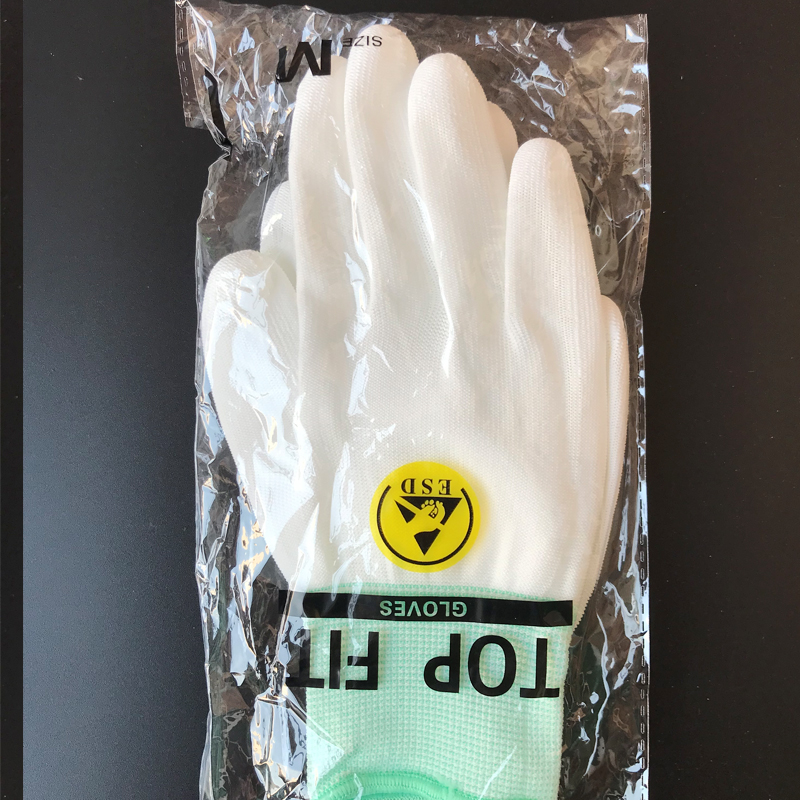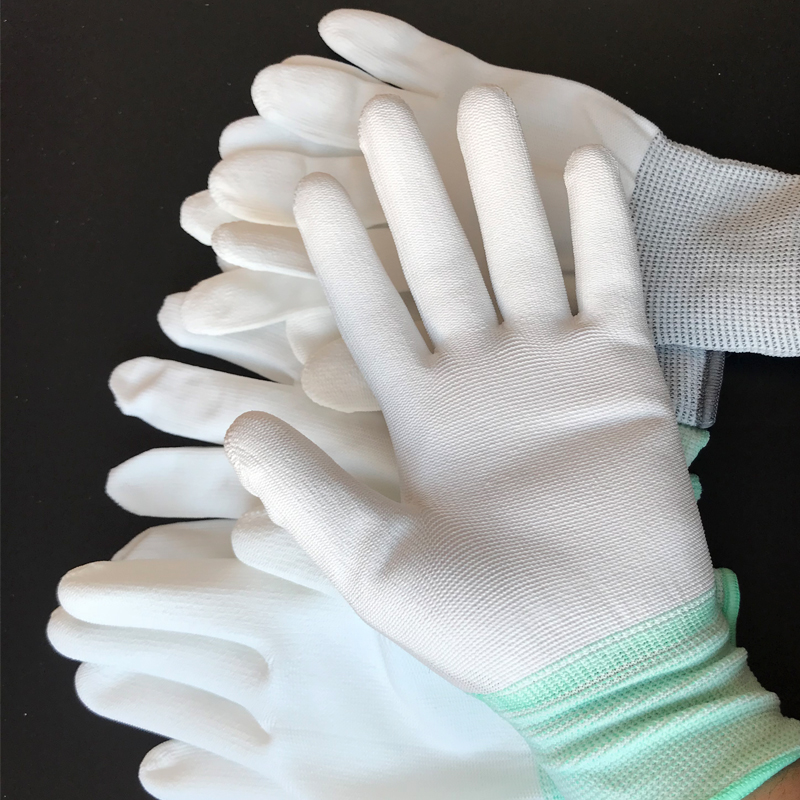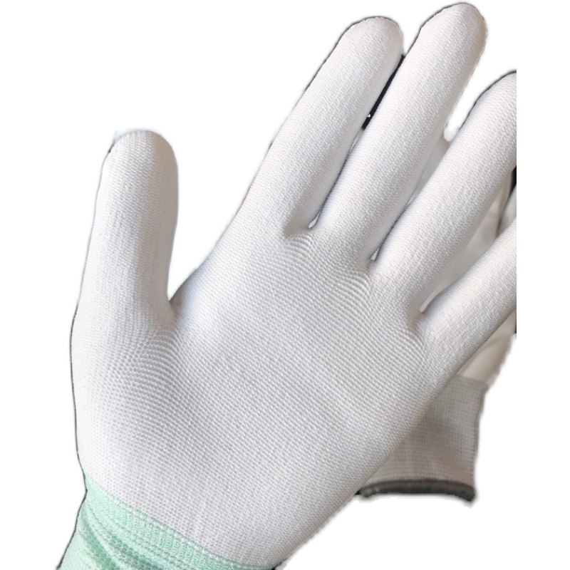 Nylon PU antistatic gluing white cotton glove coated finger slats male and female thin section factory Lauprotect abrasion-proof elastic