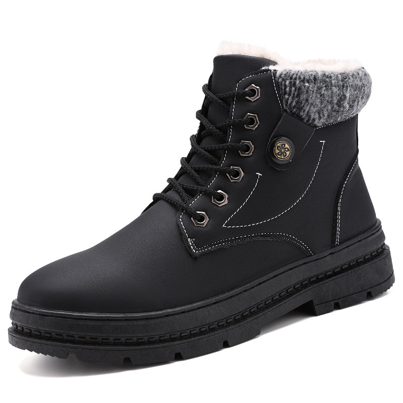 Winter cotton shoes plus velvet snow boots men's shoes cotton boots high barrel thick warm Martin boots thick soled wool boots plush middle tube