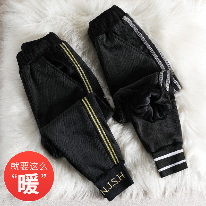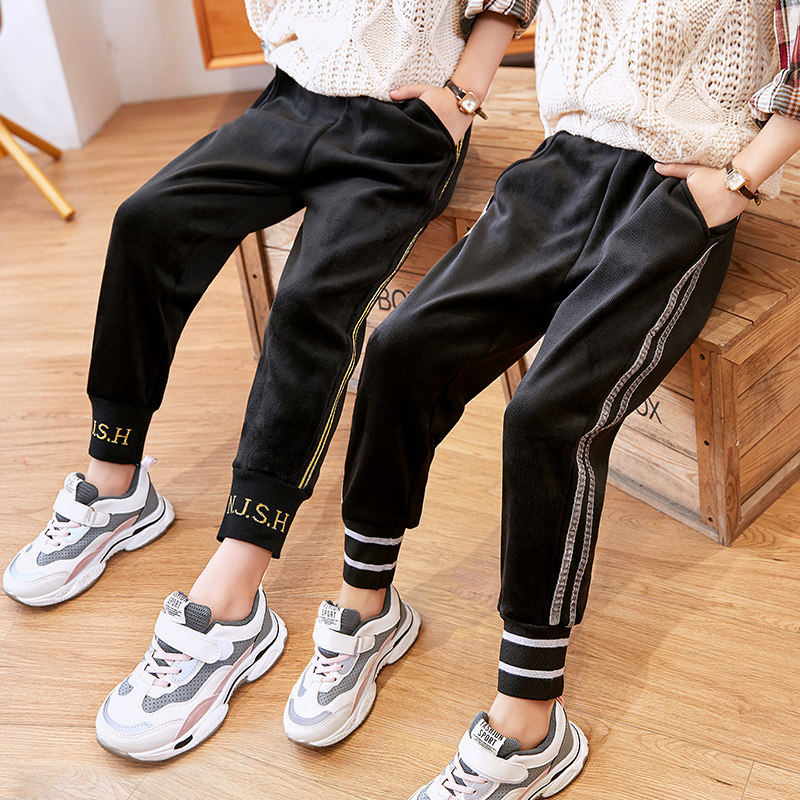 Girls plus fleece sweatpants autumn and winter clothes children's middle and older children's foreign atmosphere thick casual girls wear children's clothing long pants outside