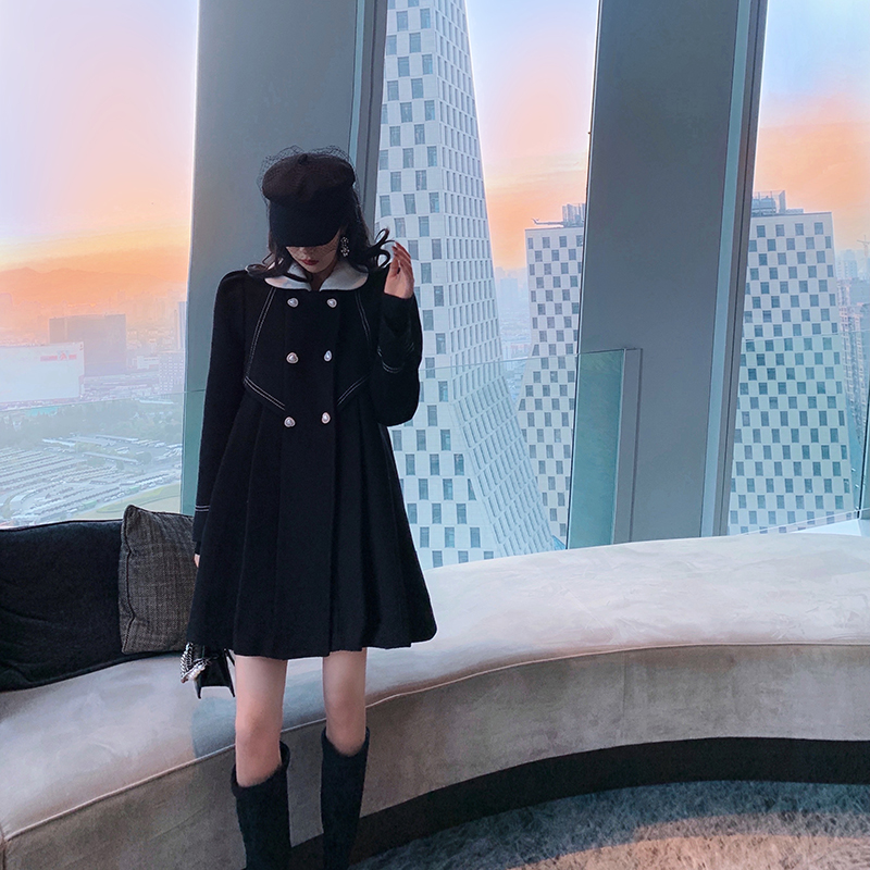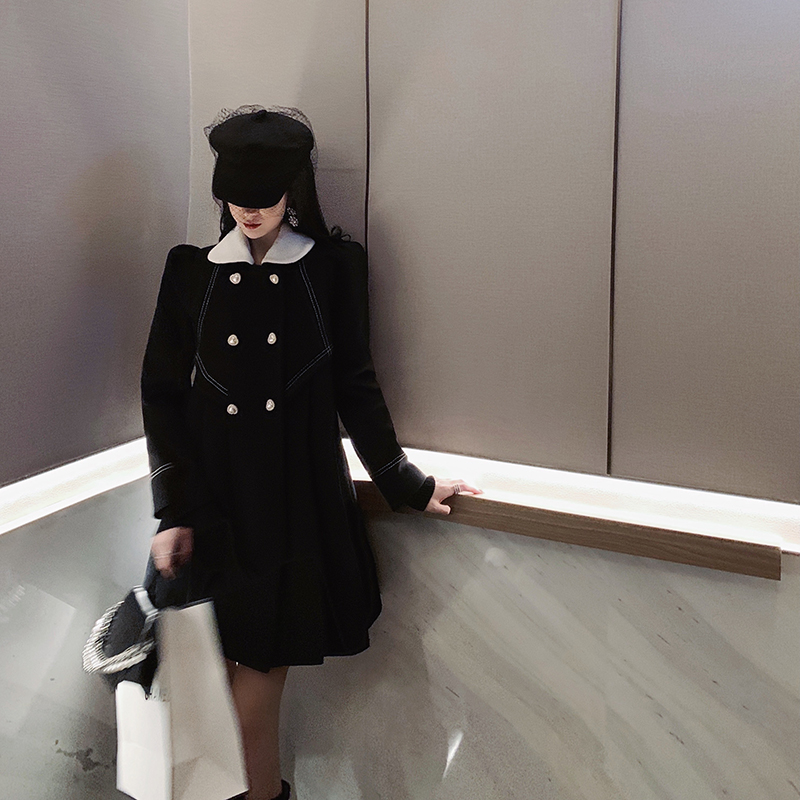 Black Fur Coats Women Autumn Winter Herben Wind Retro double-row buttoned black and white spliced long version of Daughter Coat woman jacket