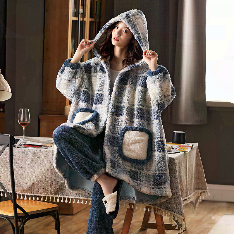 Coral velvet pajamas women's 2022 new style thickening and fluffy cute autumn and winter outdoor wear home clothes suit