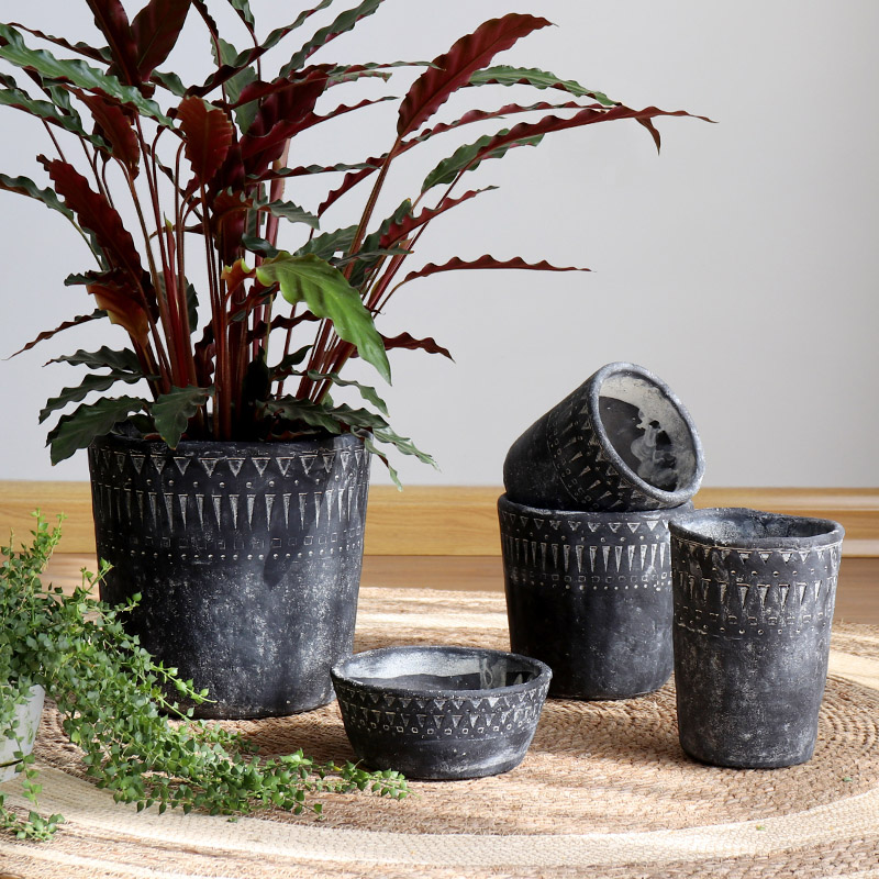 Africa Element Dark Cement Flowerpots Grow Florware Garden Decoration Basin Multi-Meat Potted Retro Art & Art Upscale Basin