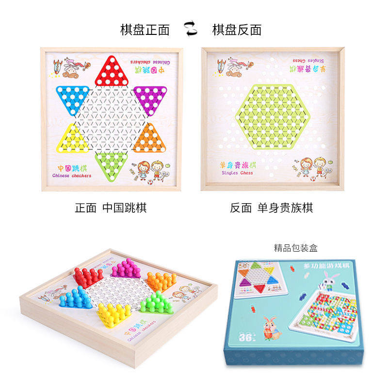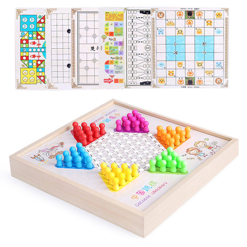 Primary school students multi-functional wooden chessboard gobang checkers military flag puzzle chess adventure fighting beast flying chess toy