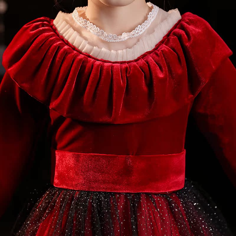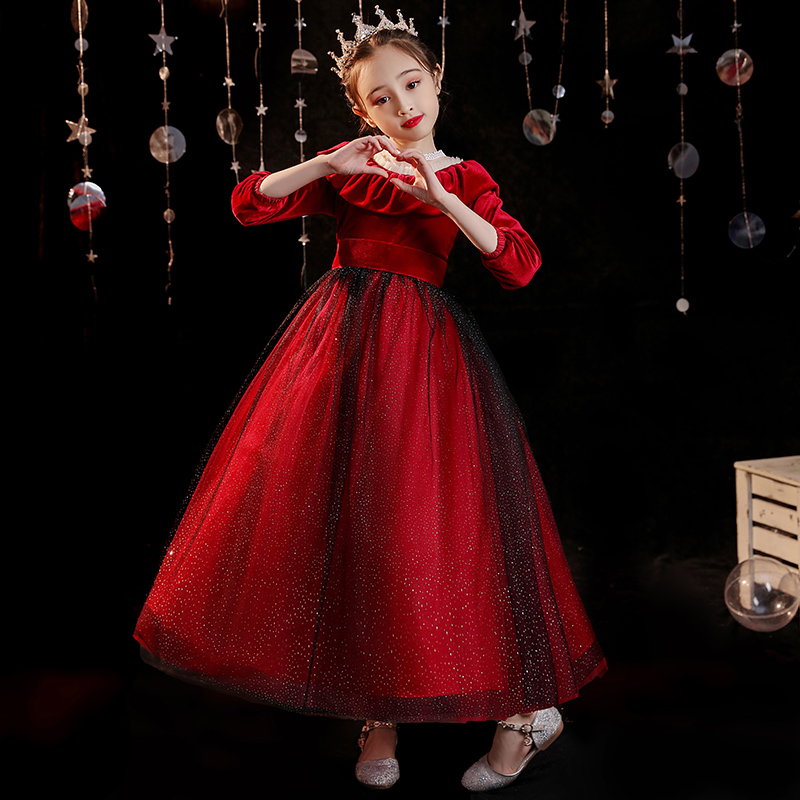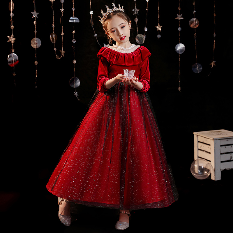 Children's dress female princess dress big boy red velvet birthday catwalk girls evening dress autumn and winter piano costumes