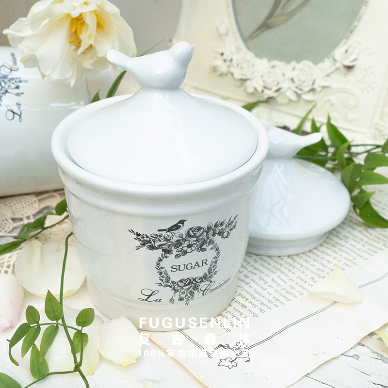 Cleaning European-style vintage bird ceramic household sugar cans with canned flavor cans decoration fittings shooting props