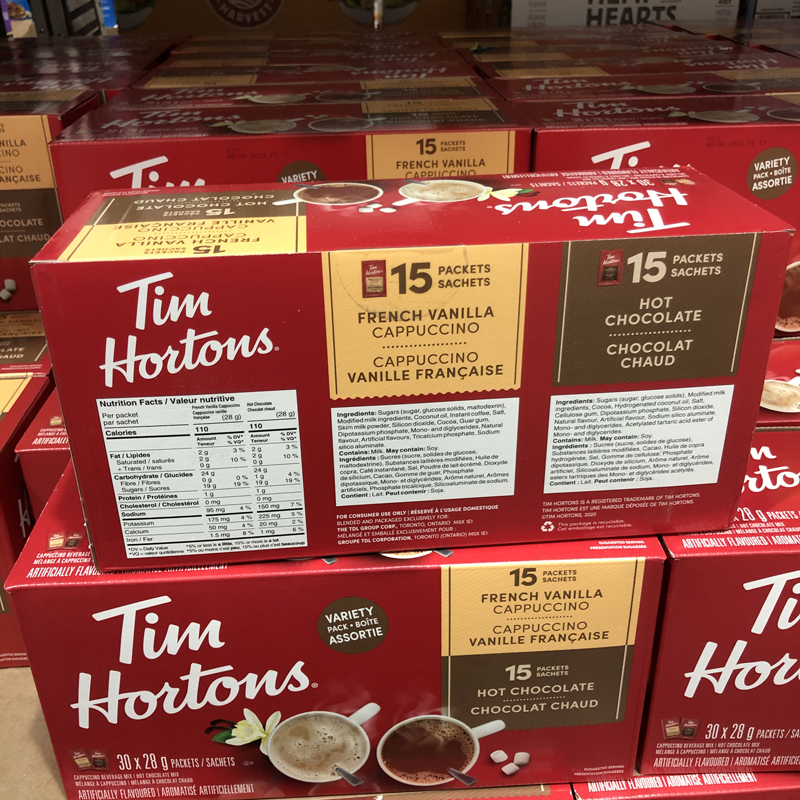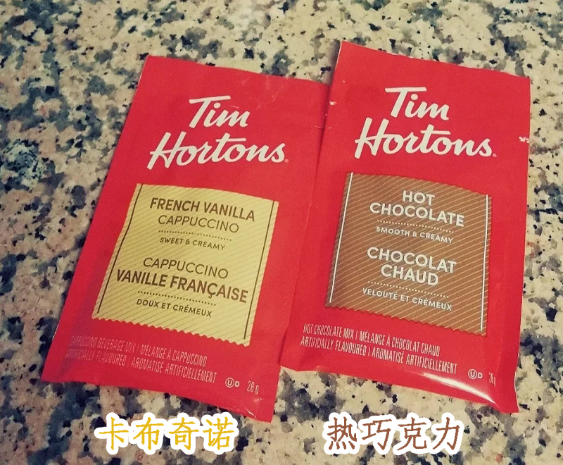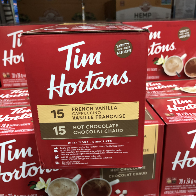 Spot Canada Tim Hortons instant coffee hot chocolate cocoa powder vanilla cappuccino 30 packs-Taobao
