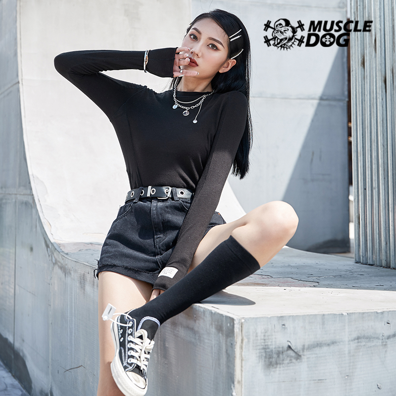 Muscle dog tide brand wild high-neck long-sleeved T-shirt women's 2020 autumn and winter new skinny sports casual knitted top