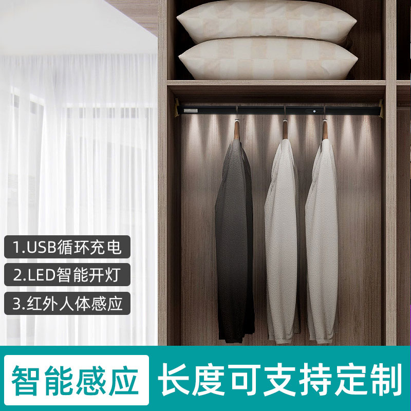 Customizable luminous LED hanging clothes-lever aluminum alloy rechargeable intelligent human body induction lamp thickened clothes-through-pole clothes