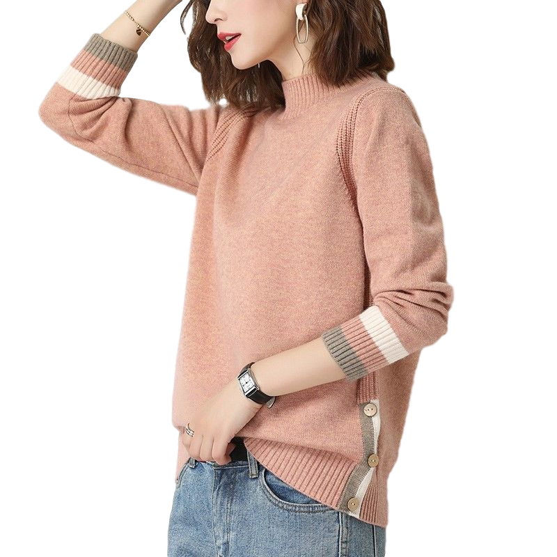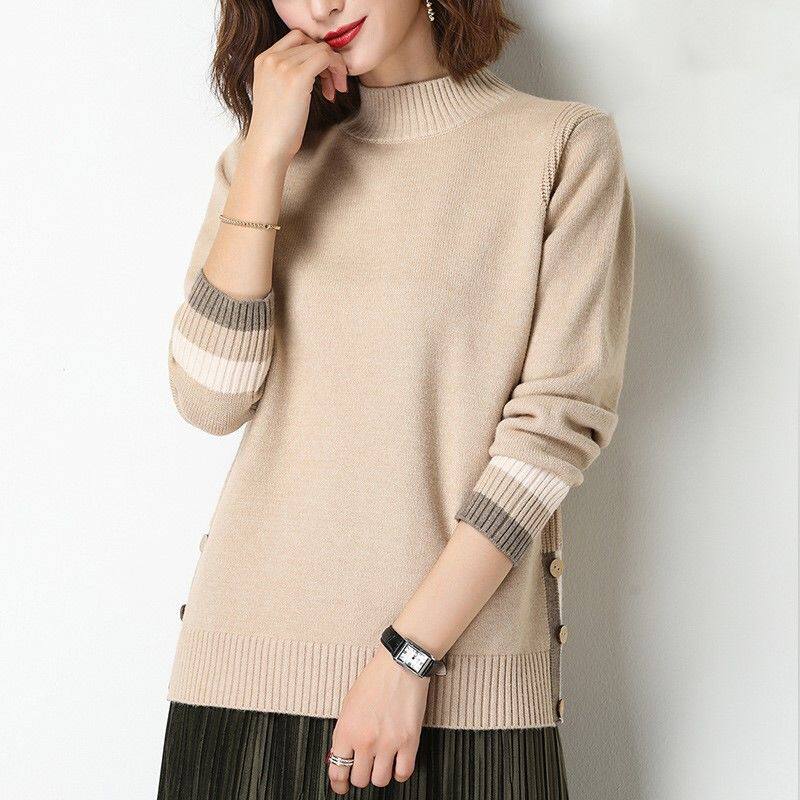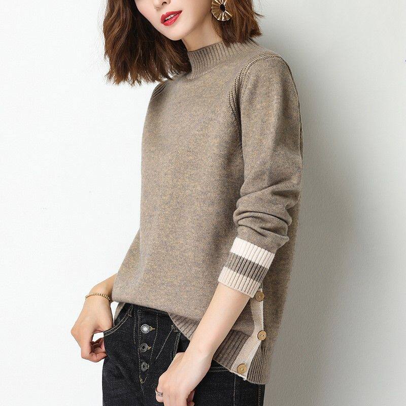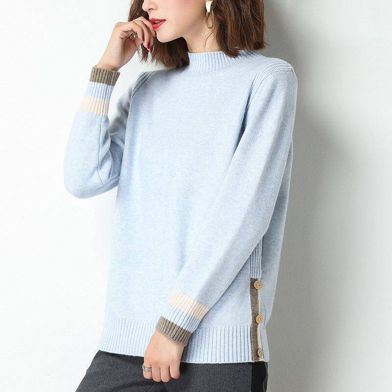 Dittutown goat sweatshirt woman short half high collar sweater with loose large size for wearing a lazy wind to the bottom of a cashmere