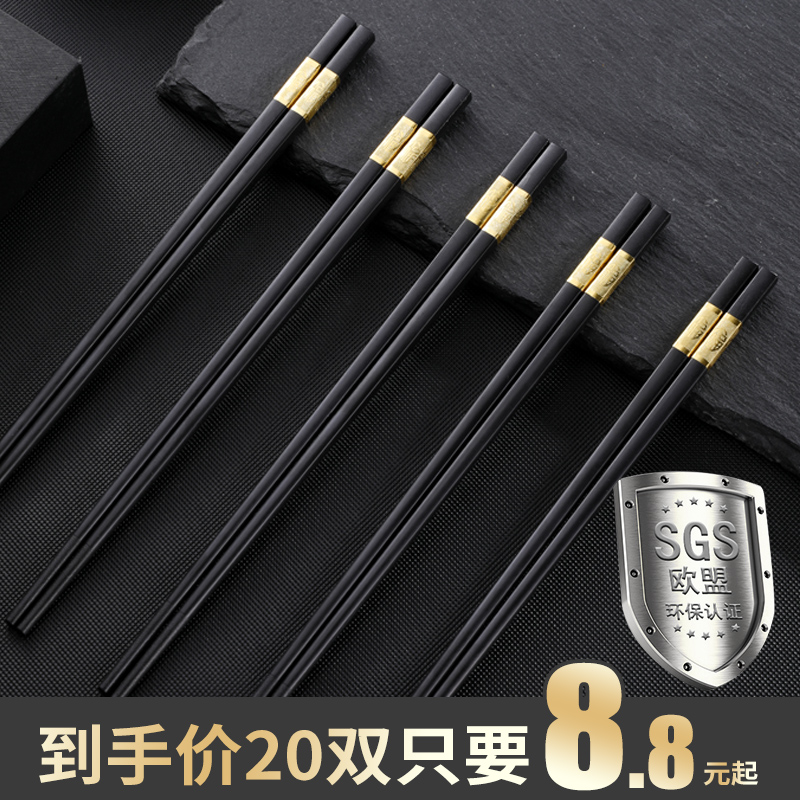 Household chopsticks Alloy chopsticks mildew-proof temperature-resistant kitchen non-solid wood non-slip quick-slip high-grade hotel tableware