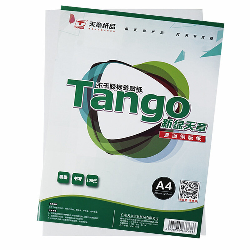 TIANZHANG (TANGO) A4 100 sheets of self-adhesive printing paper Matte coated paper Self-adhesive stickers Sub-surface adhesive label stickers Printing label paper 210*297mm 100 sheets Pack