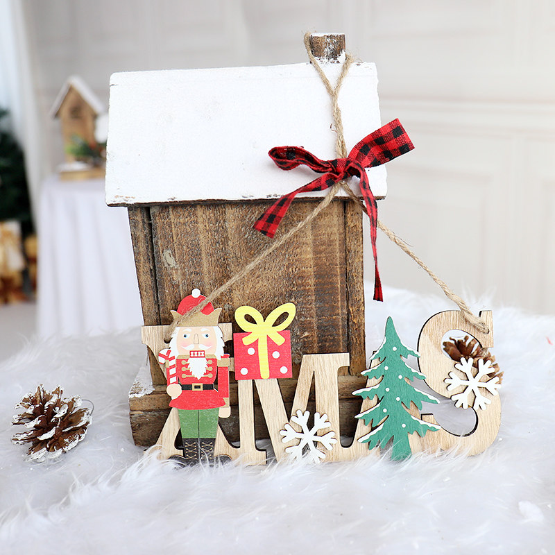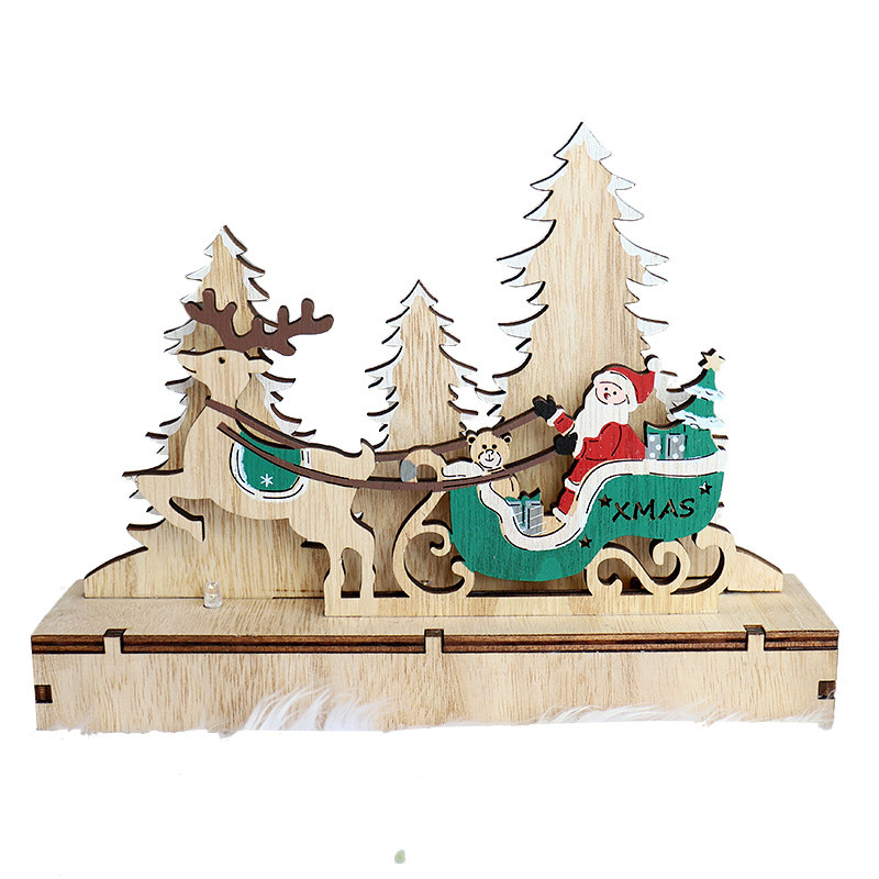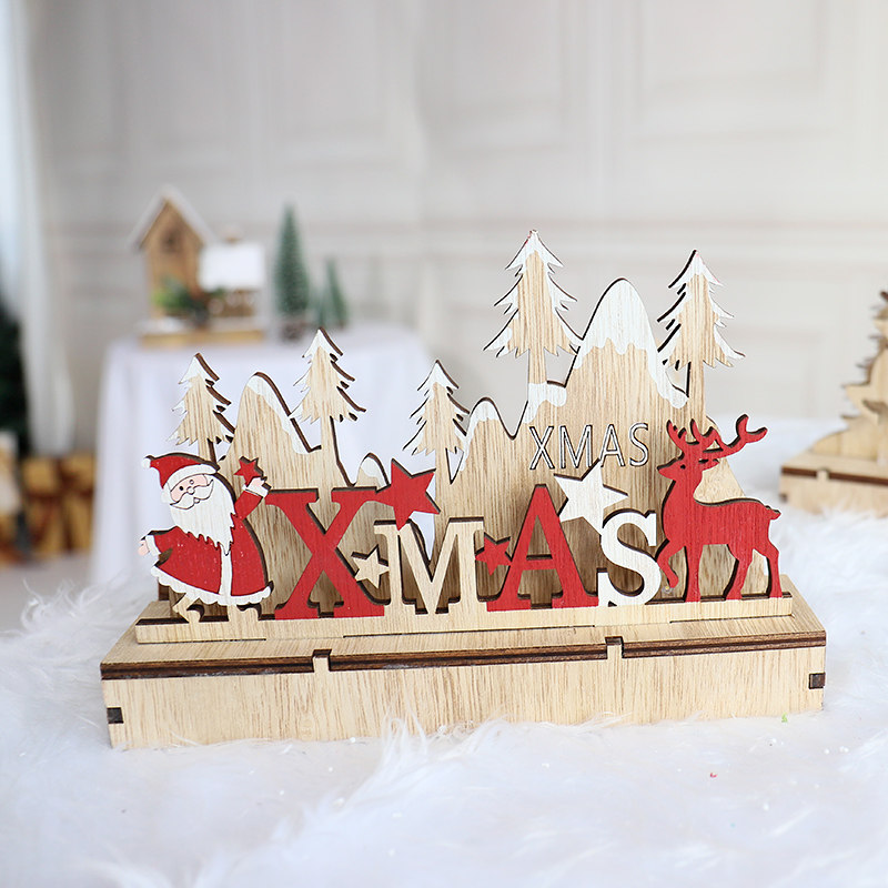 Christmas Decorations Small Pendant Table Swing Piece Small Wooden House Light Box Send Gift Diy Wooden Deer Lark Tree