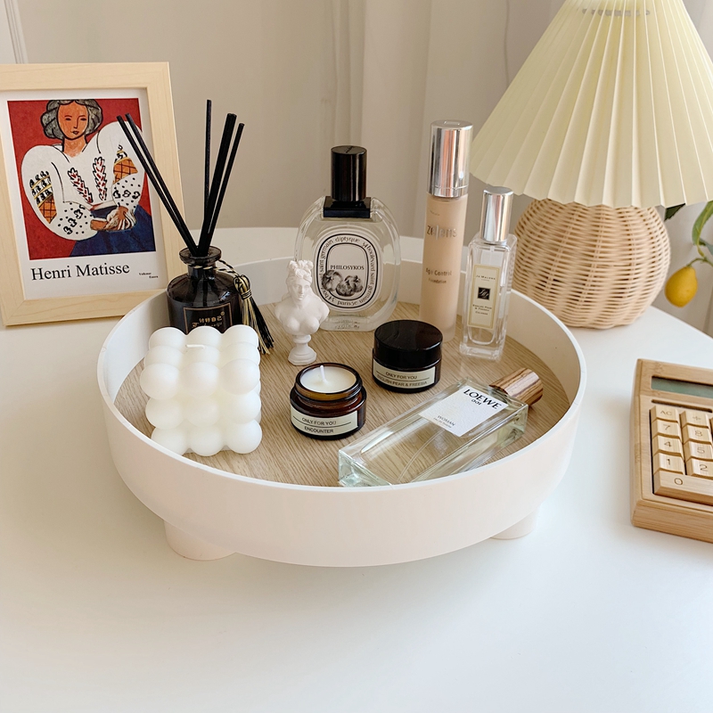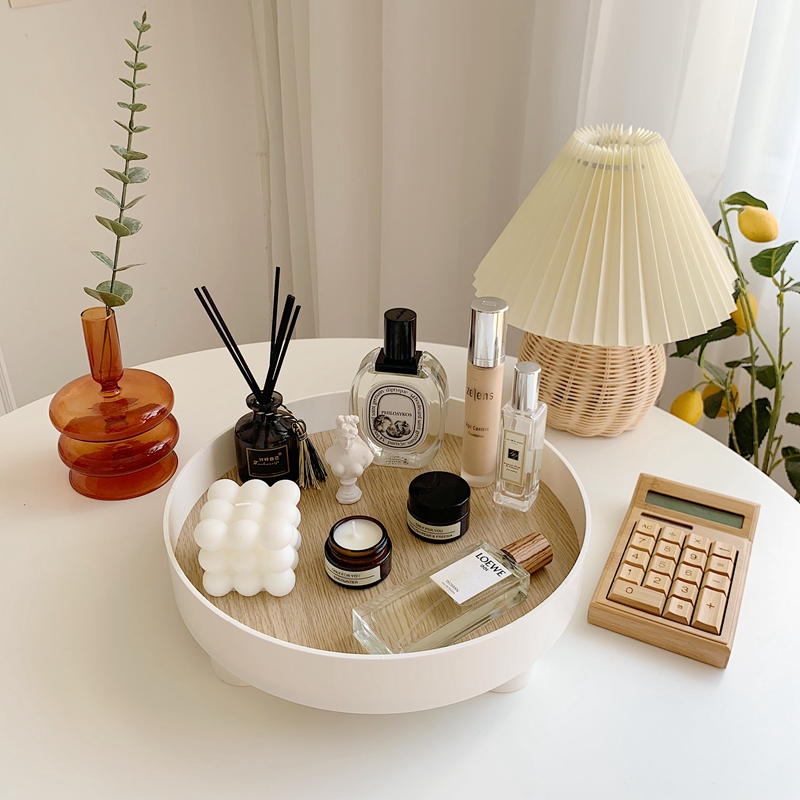 Simple Nordic round household desktop storage finishing box plate Skin care products aromatherapy cosmetics storage plate tray