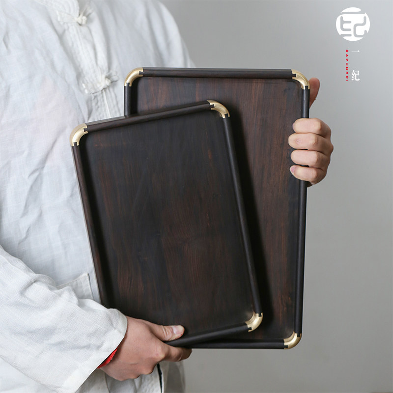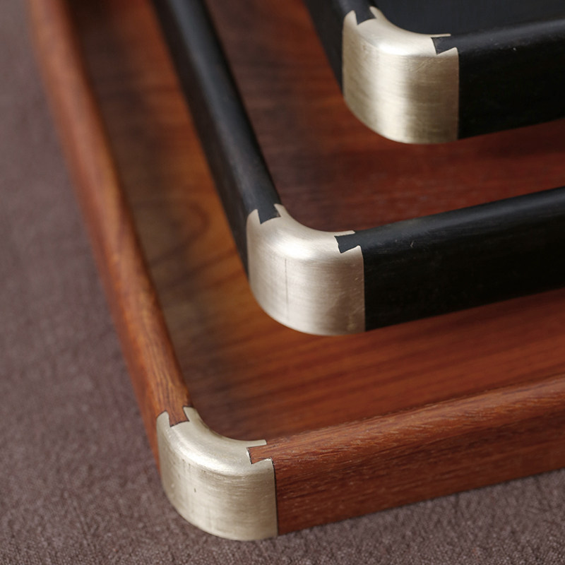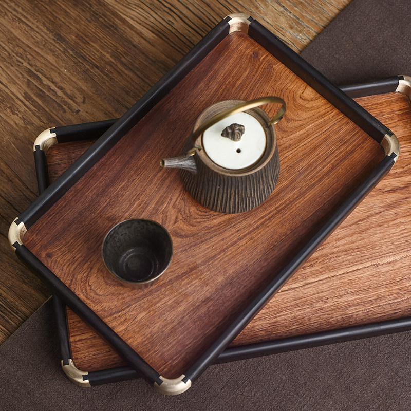 A single purple sandalwood rectangular copper corner tea plate Kung fu tea ceremony household dry bubble plate light luxury wooden tray tea bearing