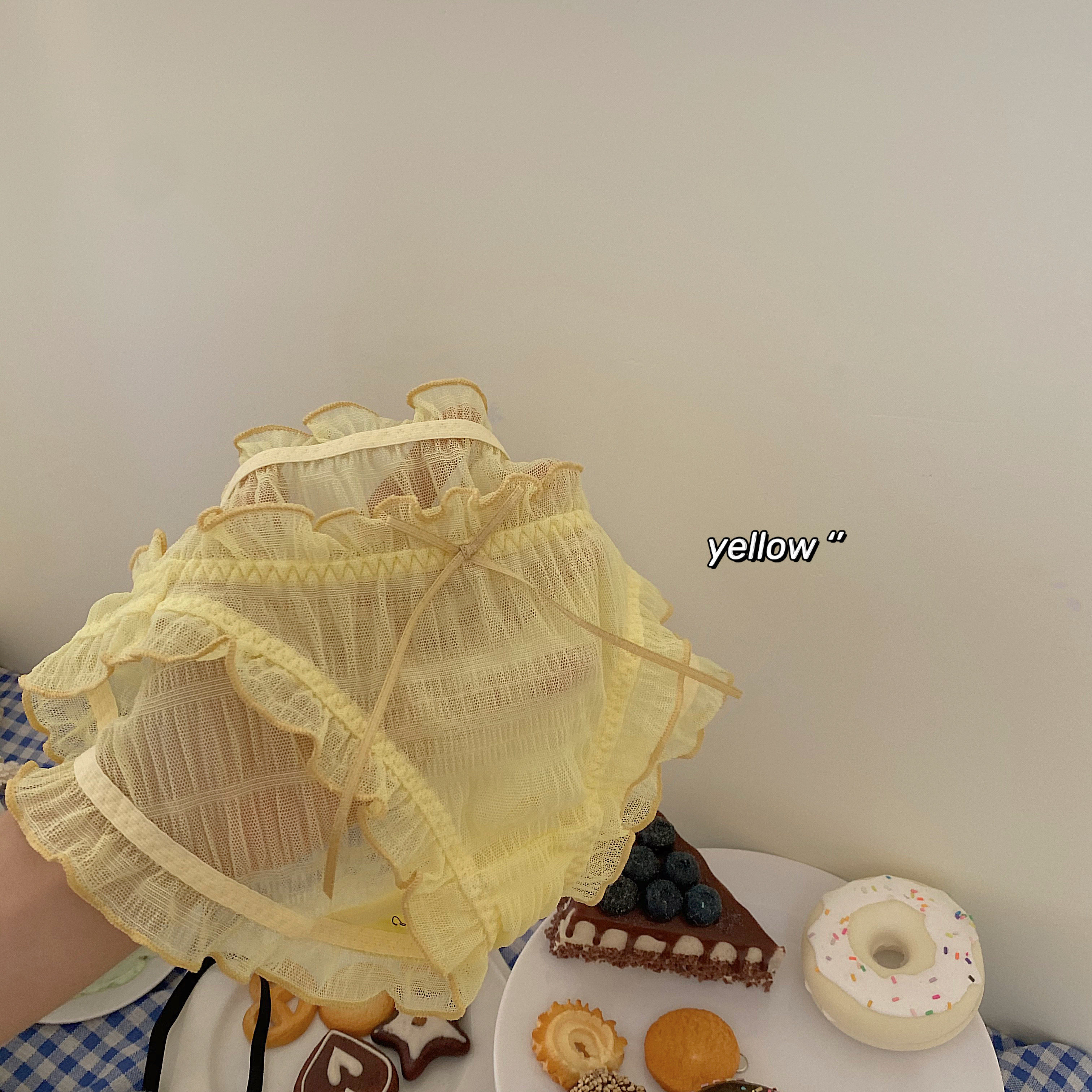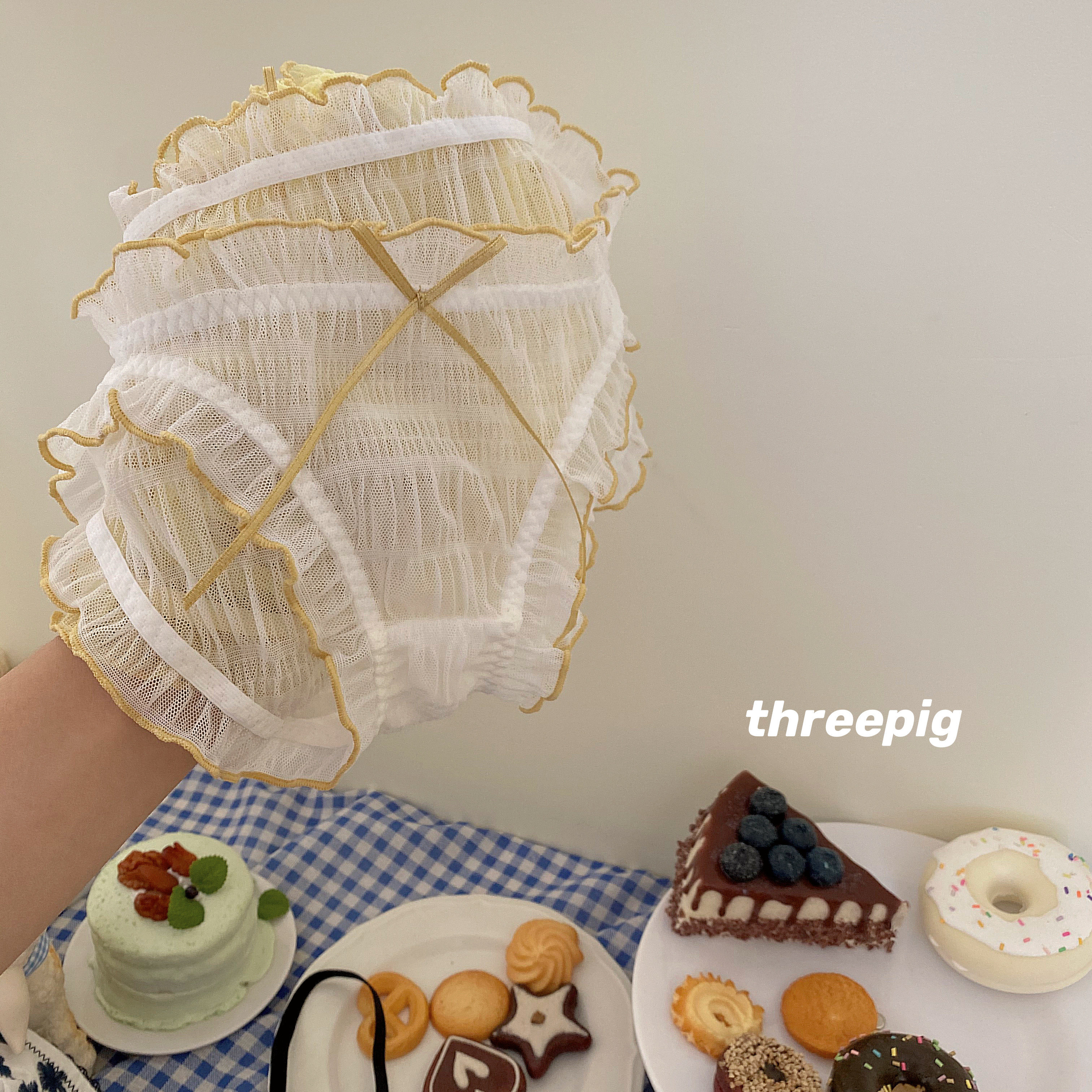 THREEPIG sweet girl heart transparent solid color mesh fungus curled thin section low waist comfortable briefs