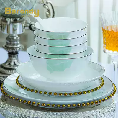 Barony Jingdezhen Bowl plate set dishes plate set components simple ceramic basin soup bowl Ming fire fort home