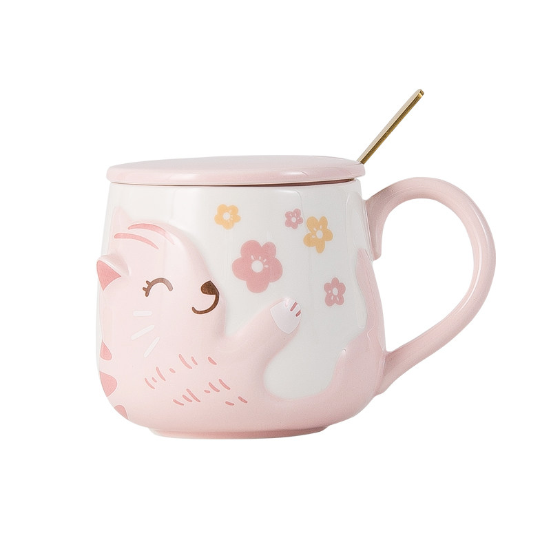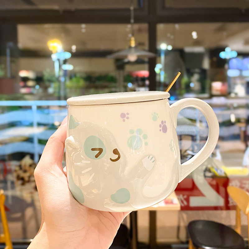 Japanese-style cat ceramic cup female cute girl creative mug breakfast cup with lid personality trend water cup