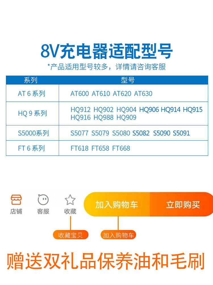 Suitable for Philips Shaver charging cable HQ850 accessories HQ912HQ915HQ916HQ917AT798