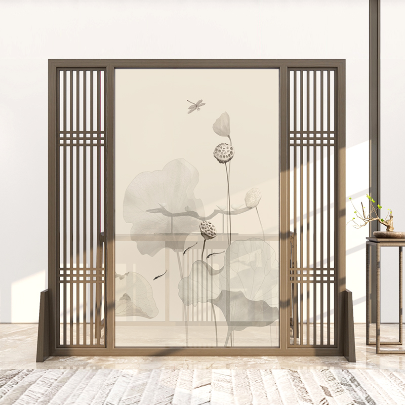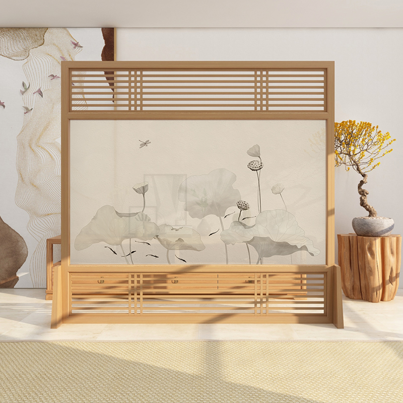 Chinese Zen solid wood screen partition wall living room modern masonry bedroom to block household office lotus seat screen