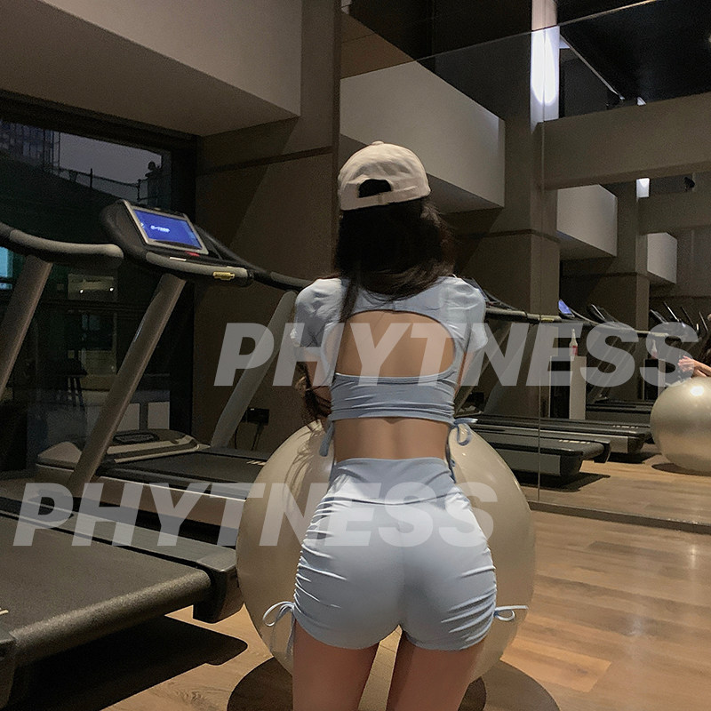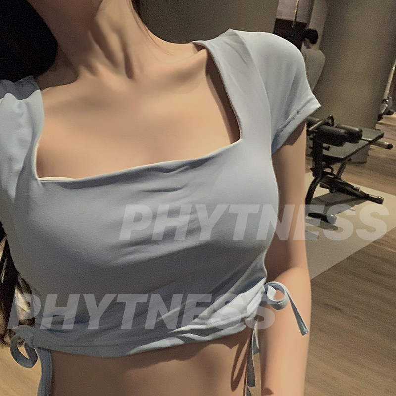 PHYTNESS 2021 new square-neck short-sleeved open-back sports strappy vest hip drawstring shorts with chest pad
