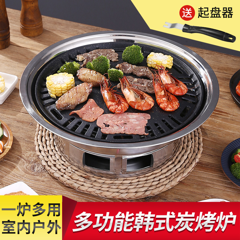 Korean-style barbecue stove pot commercial indoor round charcoal outdoor barbecue rack smokeless small household carbon barbecue stove