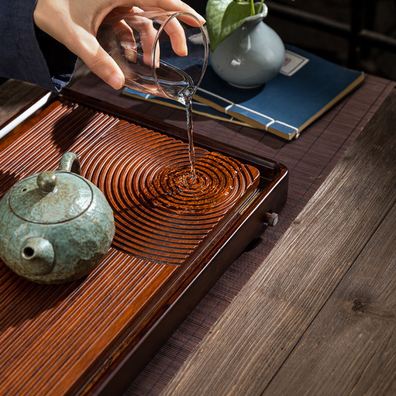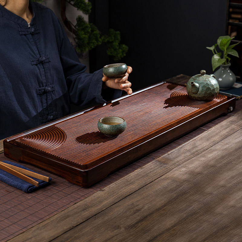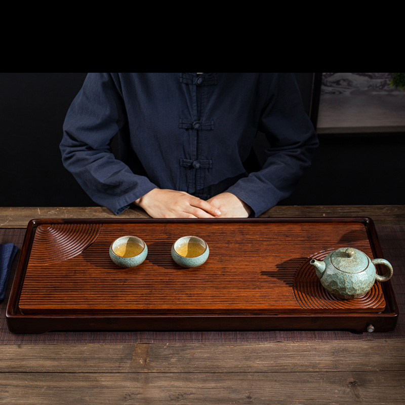 Heavy bamboo tea tray flat home simple dry brew plate size tea table drainage Japanese tea table rectangular tea sea