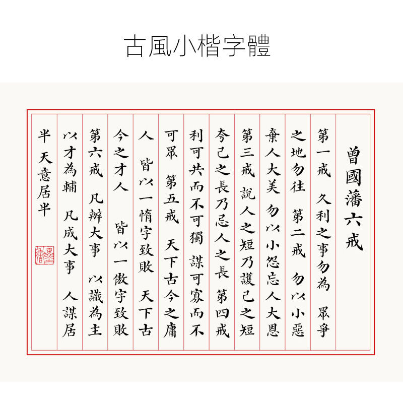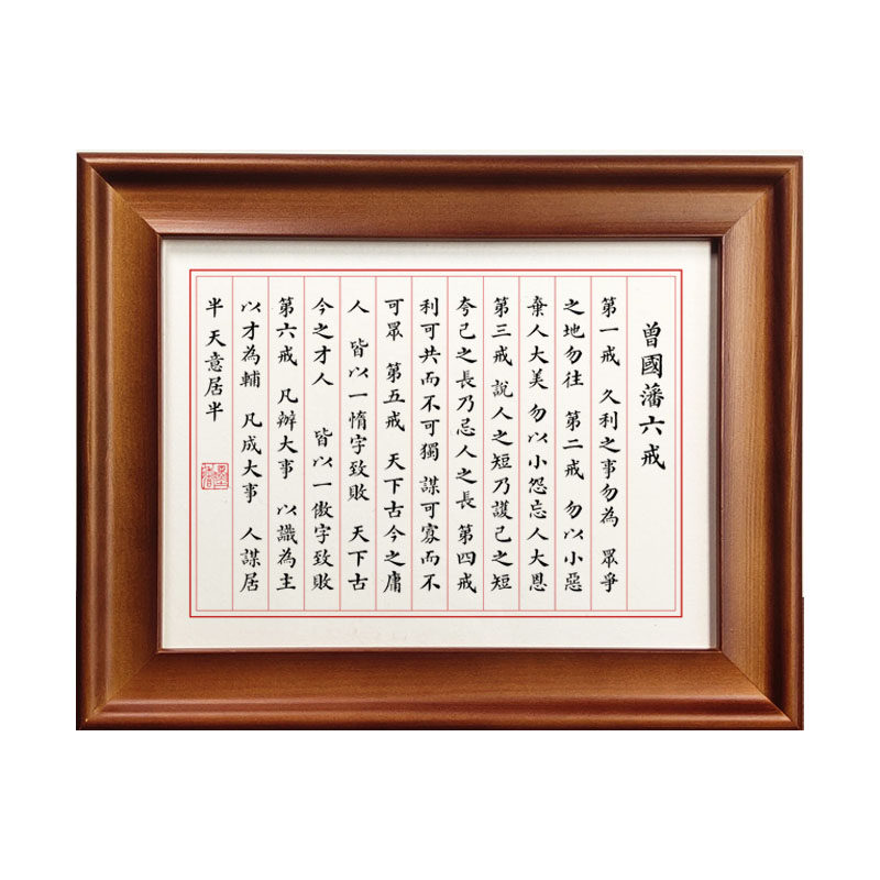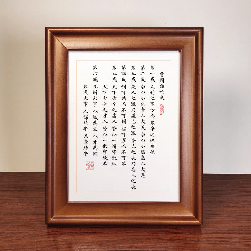 Zeng Guofan Six Commandments Antique Small Case Calligraphy Works Set Table Solid Wood Photo Frame Desktop Decoration Motto Calligraphy and Painting