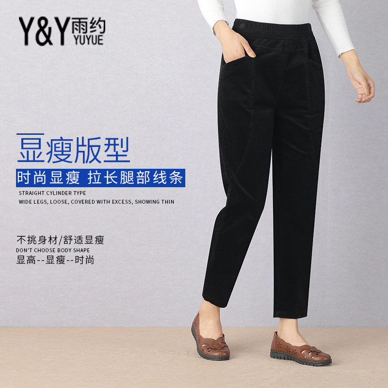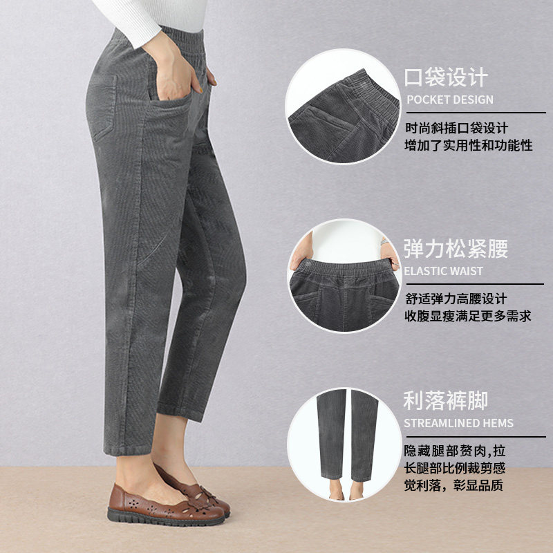 Mom trousers cordux female spring and autumn old female winter wear plus loose loose waist trousers