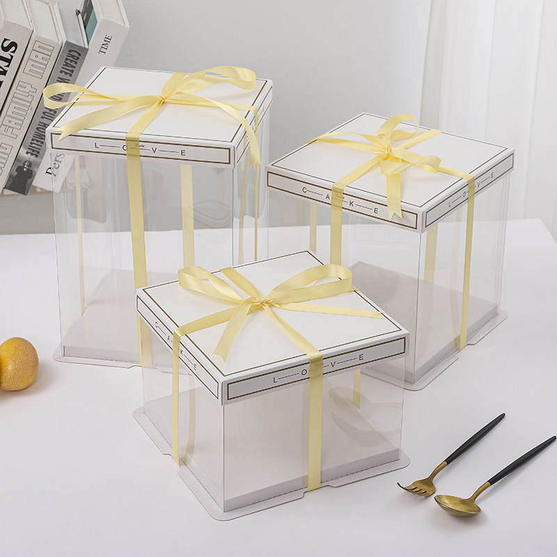 Birthday Cake Box PACKAGING BOX MESH RED EIGHT INCH 6 8 10 12 INCH DOUBLE LAYER PLUS HIGH TRANSPARENT CAKE BOX
